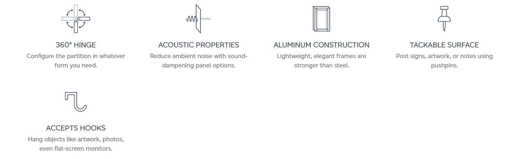 Customize your setup with single-, two-, or three-panel configurations, available with or without windows. All necessary hardware is included. These sound-dampening, tackable screens come in a variety of colors and fabrics, adding both style and greater functionality to your environment.