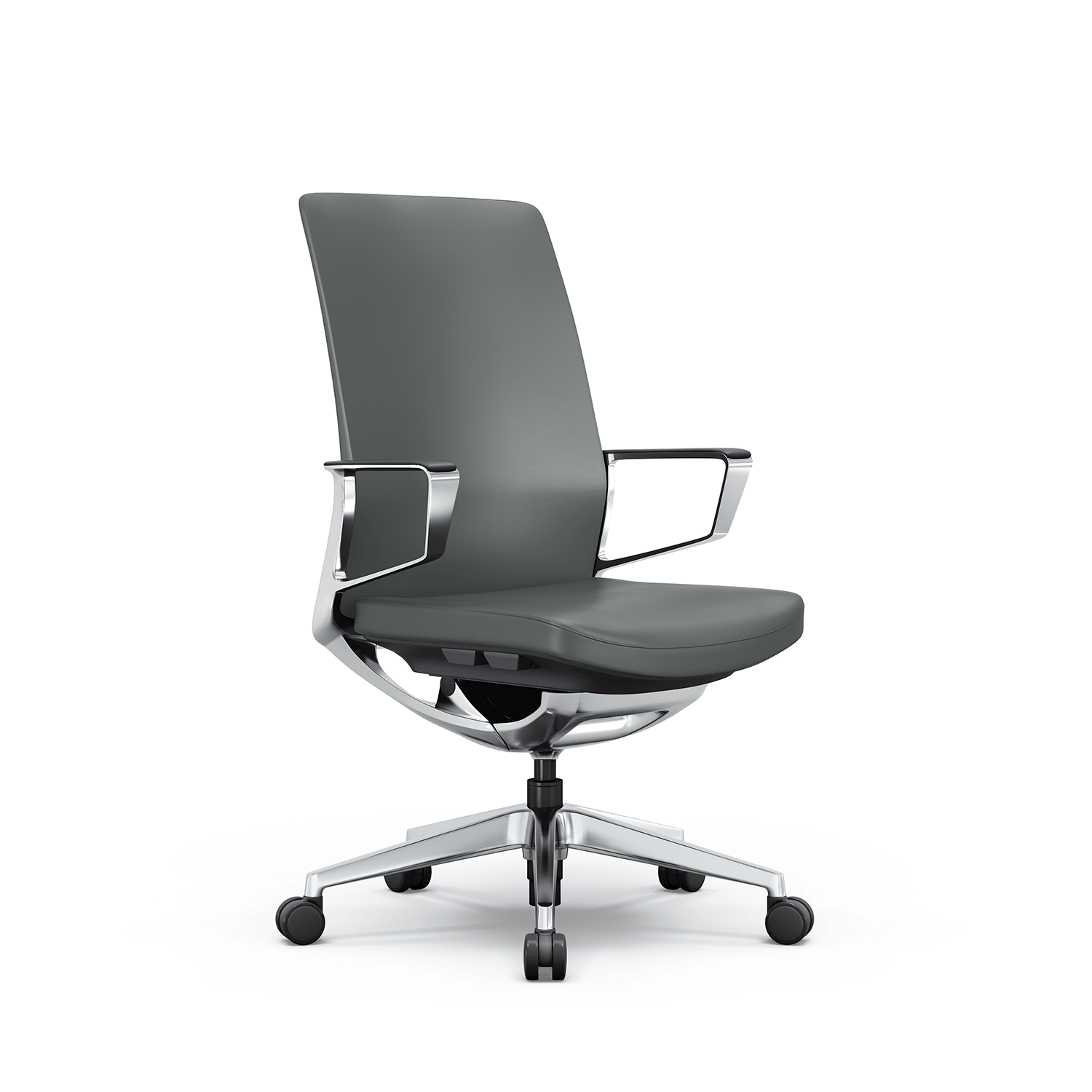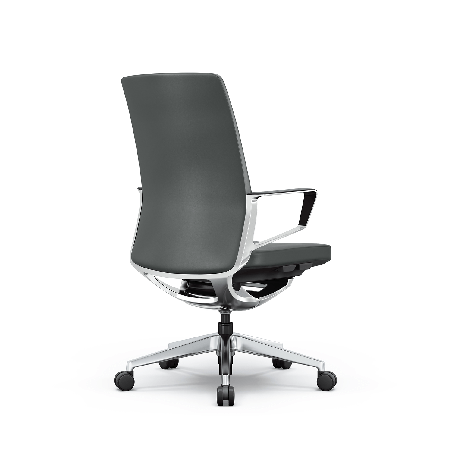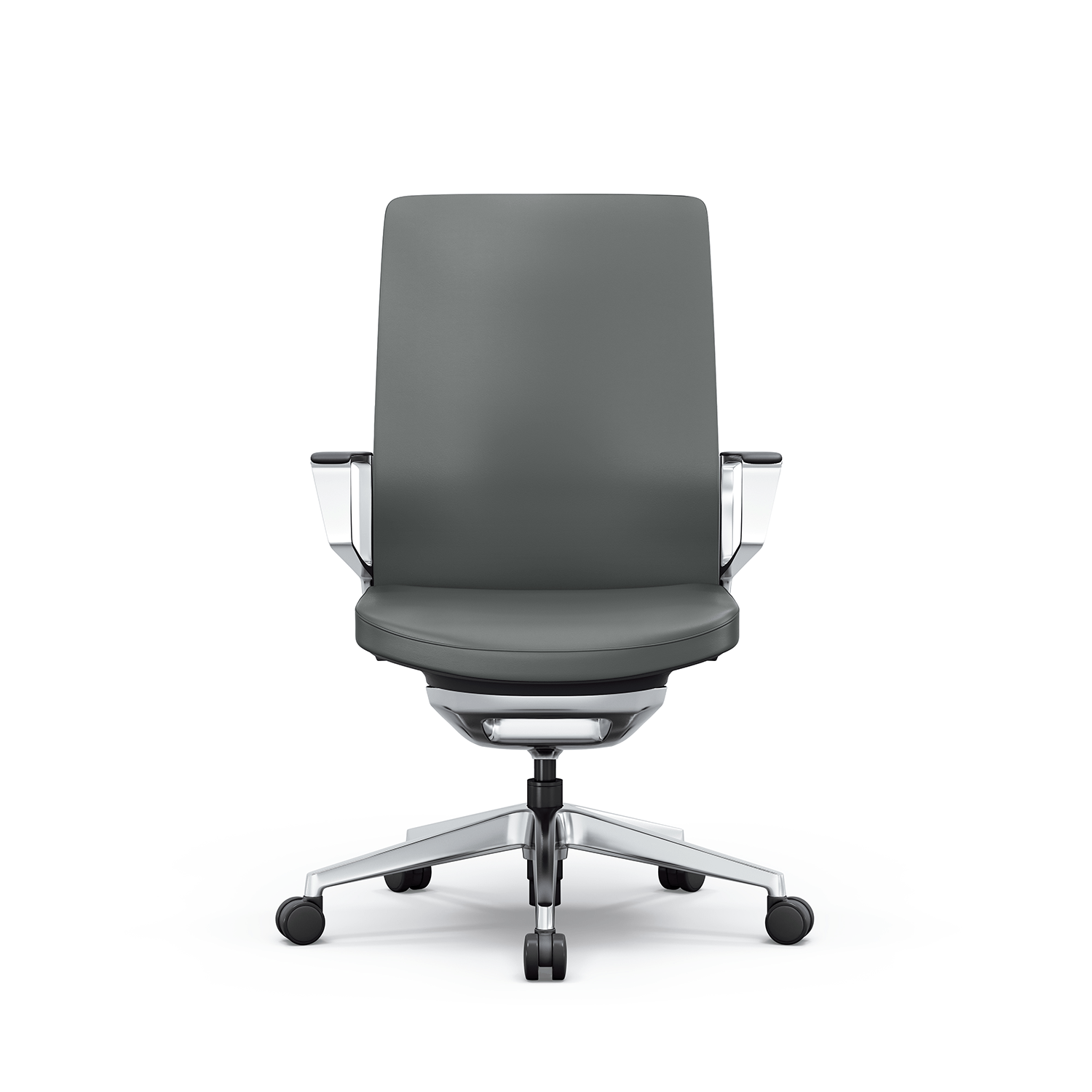 New for 2025 in a darker gray Smoky shade. Redefine your conference rooms with the contemporary design of the Gravity Conference. With its sleek and slim lines and the shine of aluminum, the Gravity Conference upgrades any conference space with comfort and class. Available in breathable mesh or smooth leather, each offering its own distinct style. Each Gravity Conference chair features a multi-function mechanism, effortless gas lift, and a back tilt that reclines naturally as your meetings progress.