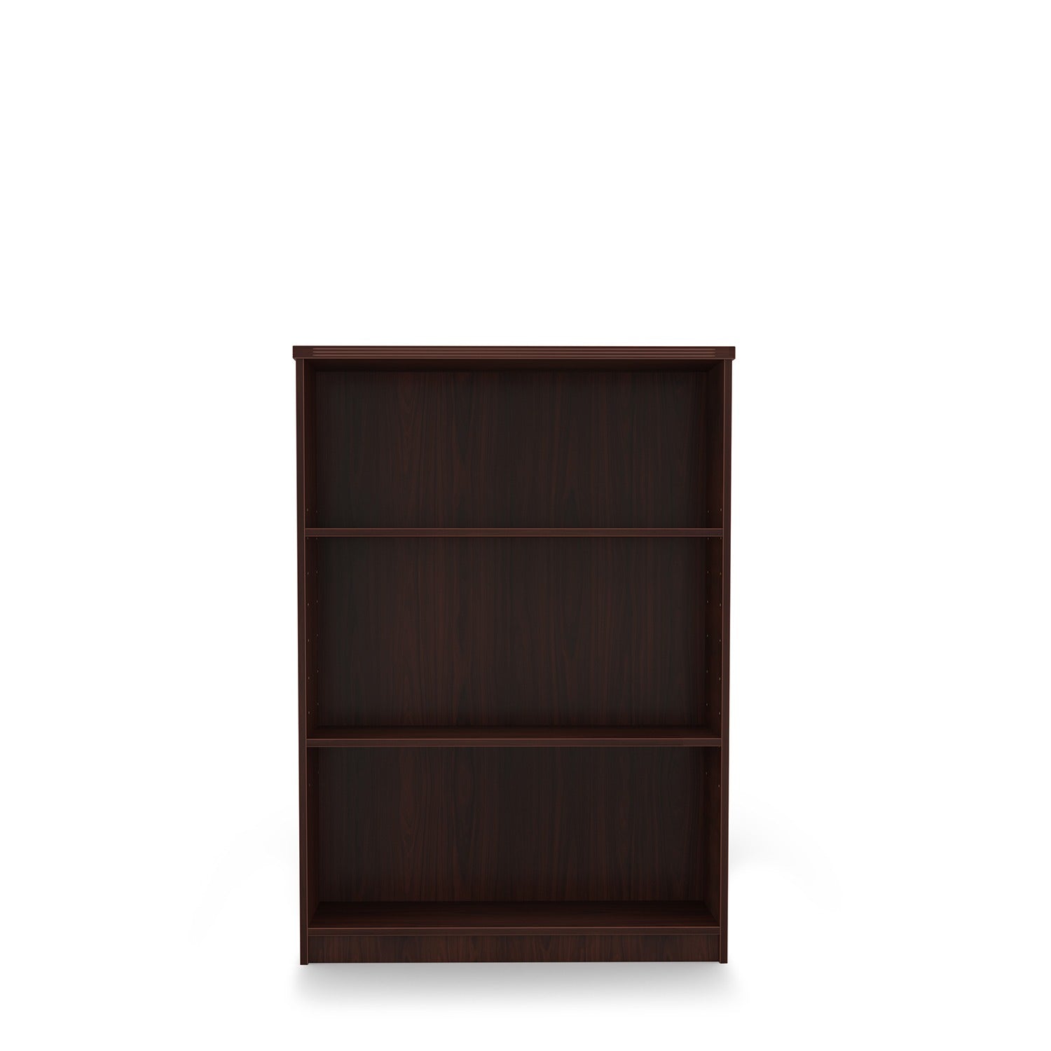 A classic laminate bookcase that is perfect for any commercial office space, classroom, library, government office, lobby, reception area, or home office. This bookcase looks good from any angle or against the wall. It can hold up to seventy-five pounds of items