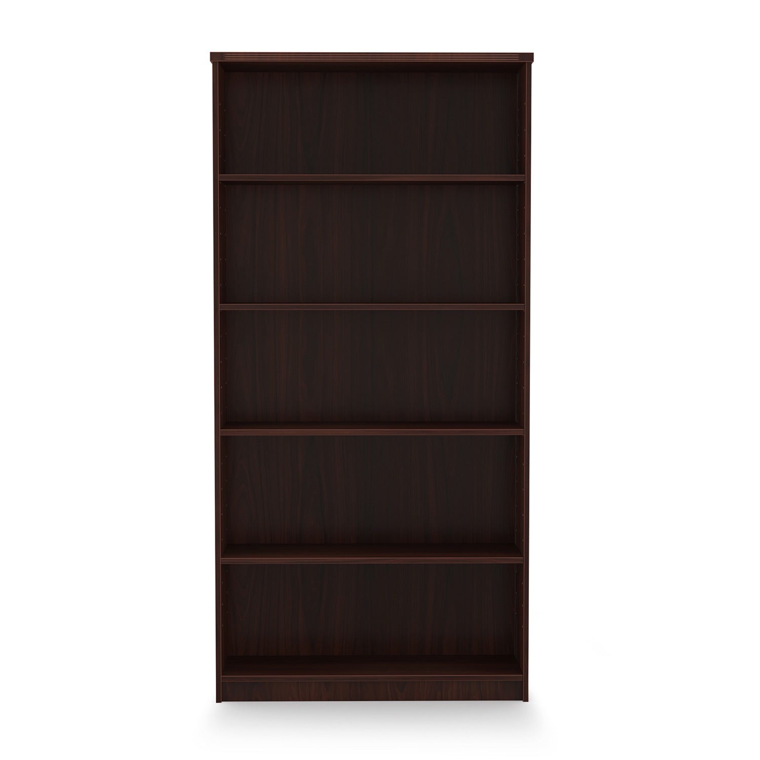 A classic laminate bookcase that is perfect for any commercial office space, classroom, library, government office, lobby, reception area, or home office. This bookcase looks good from any angle or against the wall. It can hold up to seventy-five pounds of items