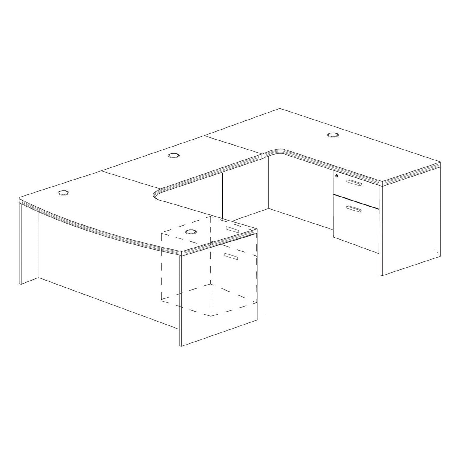 With clean lines and curved edges, this extended corner bow front desk is the perfect workstation for an executive office, home office, or wherever the room is available. Make an impressive with beautiful, rounded bow of the desktop and sit anywhere comfortable in your workstation with the curved inner extended corners. On either end of the desk is a hanging pedestal for underdesk storage with two drawers secured by lock and key. Built for durability with a heavy-duty cam and dowel system and overengineered with over 15 connection points. Available in five laminate finish options. Custom keying options are available. For righthand configurations only.