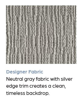 Fabric: Neutral Silver (grey) upholstery with silver edge trims.